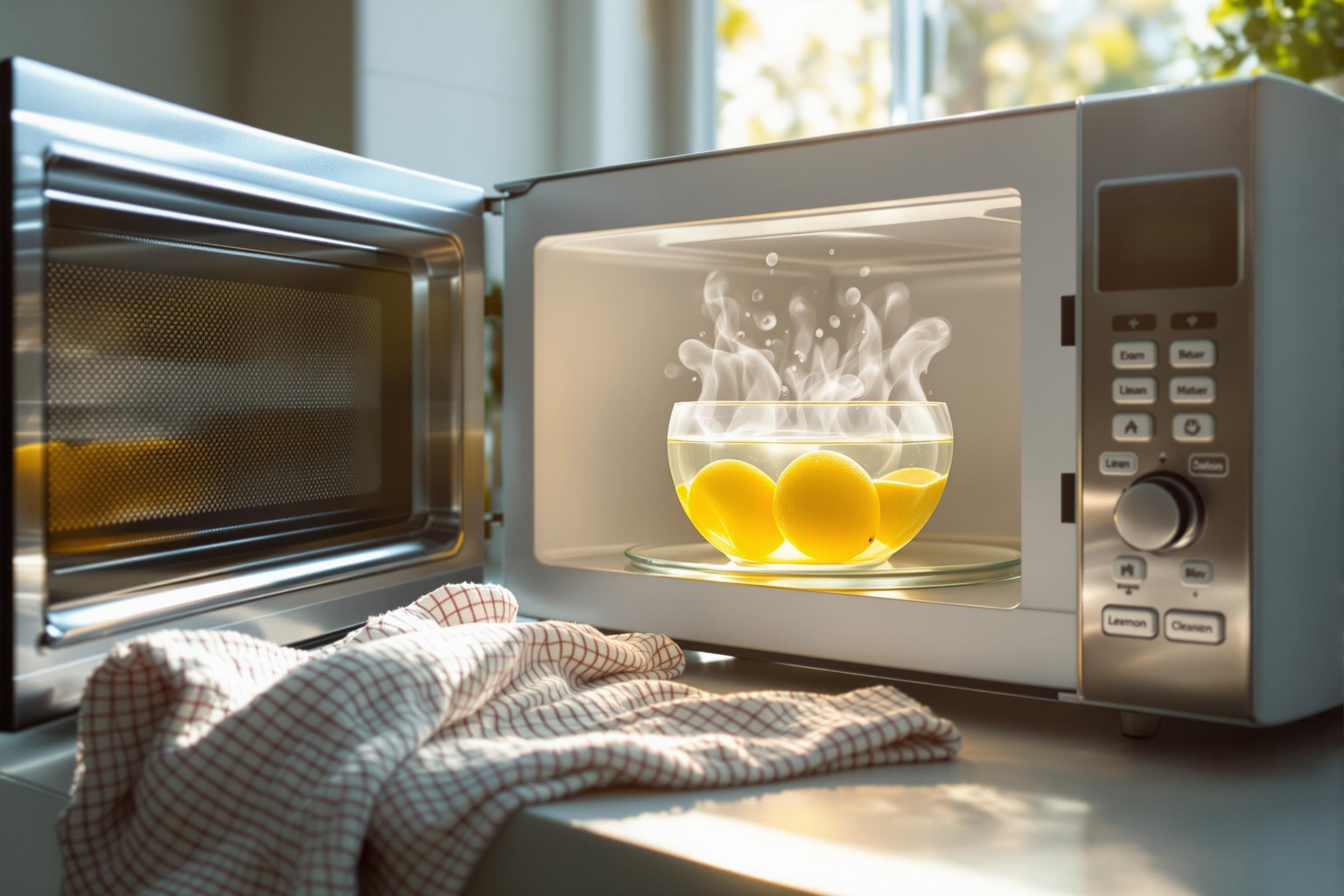 Riempire un contenitore con acqua, aggiungere il succo di un demi-citron e un cucchiaio di vinaigre blanc. Metti il contenitore nel micro-ondes e riscalda a piena potenza per 5 minuti. Il vapore generato aiuterà a staccare la sporcizia e a ammorbidire i residui, rendendo il lavoro di pulizia notevolmente più semplice.